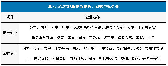 北京市家電以舊換新銷售、回收中標(biāo)企業(yè)