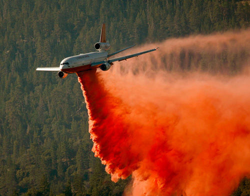 Glen灑下阻燃劑。在成功完成任務(wù)后,馬上又于晚間出動前往洛杉磯北邊受祝融侵襲的164平方英里。在這次加州火災(zāi)中,動員超過2,600位消防人員,甚至遠(yuǎn)從蒙大納州調(diào)度人力和物資,最后在星期一決定也讓世界最大滅火器一同加入。