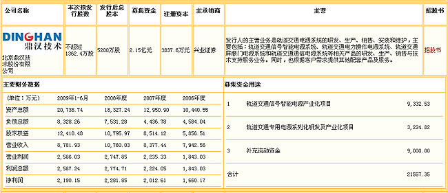 萬(wàn)元。公司發(fā)起人為:鼎漢電氣、中國(guó)風(fēng)投、中國(guó)寶安(11.26,-0.32,-2.76%)、顧慶偉、楊高運(yùn)、幸建平、方磊、楊帆、吳志軍和張霞。 公司是北京市人民政府、科學(xué)技術(shù)部以及中國(guó)科學(xué)院認(rèn)定的“中關(guān)村(6.01,0.06,1.01%)科技園區(qū)創(chuàng)新型試點(diǎn)企業(yè)”(2008年4月),北京市科學(xué)技術(shù)委員會(huì)、北京市財(cái)政局、北京市國(guó)家稅務(wù)局和北京市地方稅務(wù)局聯(lián)合認(rèn)定的“高新技術(shù)企業(yè)”(2008年12月)。 本公司致力于軌道交通領(lǐng)域電源系統(tǒng)的研究開(kāi)發(fā),經(jīng)過(guò)多年的發(fā)展,公司逐步確立了在軌道交通信號(hào)電源領(lǐng)域的領(lǐng)先優(yōu)勢(shì)。 公司的主營(yíng)業(yè)務(wù)是軌道交通電源系統(tǒng)的研發(fā)、生產(chǎn)、銷(xiāo)售、安裝和維護(hù),主要包括:軌道交通信號(hào)智能電源系統(tǒng)、軌道交通電力操作電源系統(tǒng)、軌道交通屏蔽門(mén)電源系統(tǒng)和軌道交通通信電源系統(tǒng)等相關(guān)產(chǎn)品的研發(fā)、生產(chǎn)、銷(xiāo)售與技術(shù)支持服務(wù)業(yè)務(wù)。同時(shí),也根據(jù)客戶(hù)需求提供其他配套產(chǎn)品及服務(wù)。 軌道交通信號(hào)智能電源系統(tǒng)是公司的核心產(chǎn)品,最近三年及一期分別實(shí)現(xiàn)銷(xiāo)售收入7,083.81