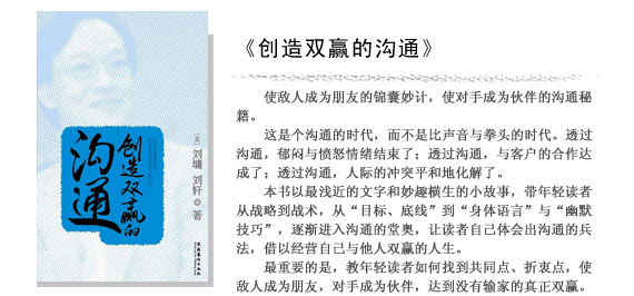 沒有不能溝通的事 大家都是老板 獨(dú)家買賣 輪流坐上座 兩全其美的妙法 各進(jìn)一步、各退一步 |