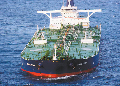 19日,被海盜劫持的沙特阿拉伯“天狼星”號巨型油輪停在索馬里東北部海面上。聯(lián)合國秘書長潘基文當(dāng)日發(fā)表聲明,對索馬里附近海域日益猖獗的海盜活動表示關(guān)注,呼吁國際社會協(xié)調(diào)一致,加大打擊力度。新華社/法新 |