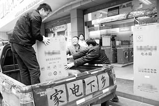 牛年大年初七,山東省平度市麻蘭鎮(zhèn)的4名村民結(jié)伴進(jìn)城,走入一家海爾家電專賣(mài)店。經(jīng)過(guò)一番比較,每人挑了1臺(tái)冰箱。4戶人家各有各的眼光,不過(guò)他們做出了相同的選擇——這些冰箱的醒目位置都貼著統(tǒng)一的“家電下鄉(xiāng)”紅色標(biāo)志。農(nóng)民購(gòu)買(mǎi)這樣的家電,價(jià)格的13%由政府出,一臺(tái)價(jià)值2000元的冰箱,補(bǔ)貼就是