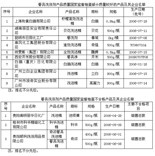 據(jù)國(guó)家質(zhì)檢總局網(wǎng)站,國(guó)家質(zhì)檢總局日前對(duì)全國(guó)51家企業(yè)的76種餐具洗滌產(chǎn)品進(jìn)行抽查,結(jié)果顯示四種產(chǎn)品質(zhì)量存有問(wèn)題,產(chǎn)品抽查合格率為94.7%。