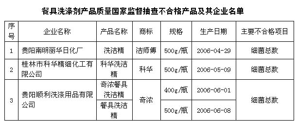 餐具洗滌劑行業(yè)抽查的主要質(zhì)量問題有細菌總量超標和總活性物含量不穩(wěn)定。