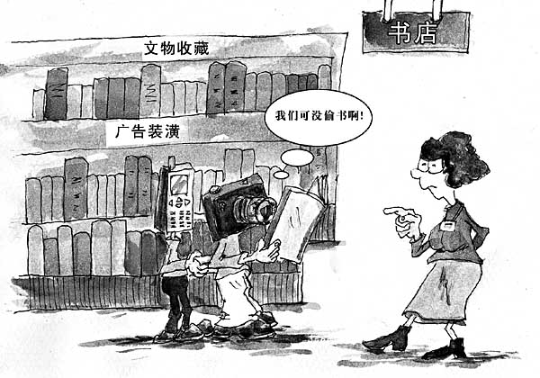 有的書(shū)店對(duì)“拍書(shū)”感到擔(dān)憂(yōu)。廣州購(gòu)書(shū)中心建筑藝術(shù)書(shū)籍柜臺(tái)一位工作人員說(shuō),現(xiàn)在很多廣告與設(shè)計(jì)書(shū)都是密封包裝的,這樣做的目的就是為了防止有人“剽竊”書(shū)中的內(nèi)容。而不管誰(shuí)“拍書(shū)”,都不可避免地會(huì)破壞書(shū)的包裝,這肯定是會(huì)影響銷(xiāo)售的。書(shū)店不是圖書(shū)館,太多的人這樣做,會(huì)影響到花錢(qián)買(mǎi)書(shū)人的情緒。