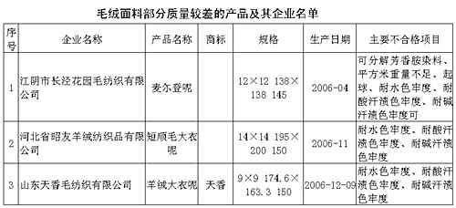 毛絨面料行業(yè)抽查中發(fā)現(xiàn)的主要質(zhì)量問題有,個別產(chǎn)品含有禁用的可分解芳香胺染料、pH值超標(biāo)及色牢度不合格。
