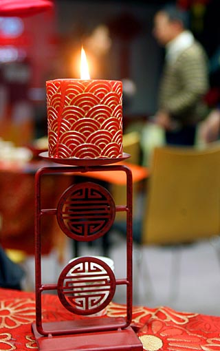春節(jié)臨近,上海市一些充滿了時(shí)尚元素的“辭舊迎新”家居飾品受到都市時(shí)尚人群的青睞。圖為上海一個(gè)家居超市內(nèi)帶有中國(guó)傳統(tǒng)圖案元素的燭臺(tái)。