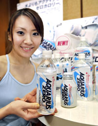 日前,日本東京展示了可口可樂公司新研發(fā)的一種無糖無卡路里型運動飲料。