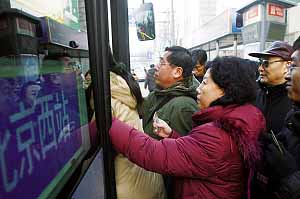 “我們車隊(duì)辦公室的人每天高峰期,都得來大北窯車站幫忙——把乘客往車上推,不然關(guān)不上門啊!”一位848路的司售人員對記者說。公交公司的線路打四折,八方達(dá)的線路依然八折,兩撥運(yùn)力一下都擠到四折車上,而八折車空駛。 848和938、723和976相同的線路,由于優(yōu)惠幅度不同造成的擠不上和沒人上,成了典型的現(xiàn)象。北京劉家窯站。在被售票員使勁推了一把后,最后一個(gè)乘客終于擠上了早已超負(fù)荷的723路。他的背緊緊貼在車門上,摸不到扶手!按蠹彝镒咦,動一步,給門口的人讓個(gè)地方。”同樣擠在門口的售票員用嘶啞的聲音喊著。車廂里擠得已經(jīng)站不住的人流,開始慢慢騰出了一點(diǎn)兒小空,這位乘客才得以轉(zhuǎn)過身來,面朝車門。車窗外,一輛乘客寥寥的976路,一閃而過。 公交公司線路四折優(yōu)惠后,723路和976路的運(yùn)力出現(xiàn)很大變化,眾多原來乘坐976路的乘客,受低廉票價(jià)吸引,開始乘坐723路!叭绻患覂煽趦涸谝嗲f和崇文門之間往返,723和976以前都是3.2元,現(xiàn)在723降到了0.8元,每月省200多塊錢!”一位調(diào)度員說:“只有經(jīng)濟(jì)條件比較好的人,仍舊坐976!
