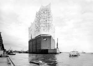 近了,越來越近了。我們乘坐的小船漸漸靠近碼頭。遠(yuǎn)遠(yuǎn)望去,紅褐色的外墻絲毫感受不到這座建筑的特殊,但手中新聞冊上的設(shè)計(jì)效果圖(見左圖)卻讓人陷入了無盡的遐想之中。 世人眼中,德國漢堡是一座港口城市。但如今,漢堡人要改變世人對它的印象。在易北河畔,漢堡人將建起一座宏偉的音樂廳——易北愛樂廳,它將躋身于世界十大音樂廳之列,給酷愛音樂的德國人再添一座如同柏林愛樂廳那樣的藝術(shù)殿堂。 “易北愛樂廳”