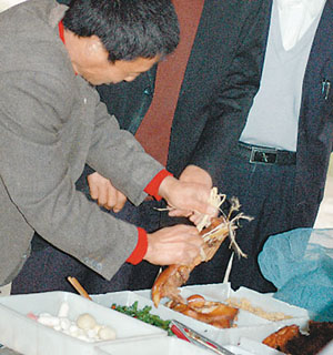 珠岸村邊,是楠溪江。冬天的陽光下,江水碧綠,疏林橫斜。陳飛說:“你看這樣美麗的江水,以前江邊樹上可都掛滿了塑料袋!” 眼前這個農(nóng)民黑黑的臉膛,粗糙的大手,說一口帶溫州腔的普通話,實在想不出,他怎么能在7年前就有這樣的環(huán)保意識。 “就因為農(nóng)村塑料袋越來越多,污染了我山清水秀的家鄉(xiāng)。有一天兒子從網(wǎng)上下載資料給我看,說塑料袋還有毒。我一下就坐不住了,覺得我得管這事兒! 于是陳飛開始行動,在村里挨家發(fā)放塑料袋有毒的資料,呼吁大家恢復菜籃子,拒絕塑料袋。當時很多村民不理解,家里人更反對,“外面人都說陳飛是個傻子。親戚都勸我別干這事了,我一個農(nóng)民,怎么管得了大家用塑料袋呢?” 過去7年,陳飛跑了全國19個省送菜籃子,花了幾萬元的積蓄。第一次去集市送籃子,大家都覺得他瘋了,一天就送出去一個。 陳飛決定做點更實在的事情,他首先要改變村莊臟亂面貌。 “以前我們村,塑料袋到處都是,風一吹,滿天飛;河道成了垃圾場,堆滿了垃圾,臭不可聞,夏天要捏著鼻子走!标愗わw說。 2004年,陳飛回村出錢雇人,為村里清理河道垃圾。這一清嚇一跳,花了一星期才清完,挖出來的垃圾裝了100多車次的拖拉機。 “挖出的垃圾我讓村里人看,河底不知多少年的塑料袋,挖出來還是嶄新的,要爛掉,得多少年。“淹寥、水全部污染了。這樣邊做邊說,動員大家接受我的理念!标愶w說。 陳丐飛是最早一批被陳飛的環(huán)保理念說動的無塑料袋擁護者!八倎碚f,因為管住了我們小店就管住了大部分塑料袋的源頭。我覺著他說得有道理!剛開始試了不少老辦法。比如恢復用稻草扎肉,又結(jié)實又環(huán)保;我老婆自己做紙袋裝食品,你看,就是這個!”陳丐飛掏出一沓泛黃的紙袋。 剛開始的推廣不容易!按迕窠邮懿涣,說我們農(nóng)村還搞這個,不方便,沒必要,也做不到。還有些特別倔強的,看我們小店不給他用塑料袋,就自己揣著塑料袋來買東西!钡S著時間的推進,越來越多的村民加入了環(huán)保行列。尤其是2005年初,豎了“第一村”的牌子后,很多村民開始珍惜自己村的榮譽。