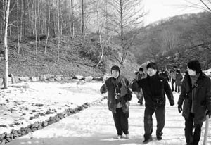 在這其中,歷經(jīng)40余載從枯山變成茂密森林的韓國忠州人登山“SK人才之林”給學(xué)生們留下了極其深刻的印象。 40年前,韓國的經(jīng)濟開始起飛之時,人登山的植物受到了大面積的破壞,土壤直接暴露在陽光和暴雨之下,水土流失十分嚴(yán)重。在一片質(zhì)疑和嘲笑聲中,韓國SK集團會長崔鐘賢帶領(lǐng)著員工,在光禿禿的忠州人登山上種下一棵棵小樹苗,留下了堅定的腳印和希望。 40年后,故人已去,曾經(jīng)荒蕪的人登山變成了茂密的森林!癝K集團通過這樣的活動既培養(yǎng)了員工關(guān)愛自然、保護(hù)環(huán)境的珍貴品質(zhì),也通過每年林業(yè)帶來的收益,包括果實、木材的收益設(shè)立獎學(xué)金,資助優(yōu)秀學(xué)生讀書,為國家培養(yǎng)了人才!盨K集團相關(guān)負(fù)責(zé)人講述的有關(guān)“SK人才之林”的感人故事吸引了大家。 2月2日,我們一行從首爾出發(fā),1個多小時后來到韓國忠州人登山的“SK人才之林”。人登山位于韓國北部的天登山和南部的地登山之間。這里剛剛下過雪,環(huán)望四周,一片雪白;一排排的參天大樹,樹干沖向天空,在陽光的照耀下舒展著枝杈。迎面吹來陣陣細(xì)風(fēng)送來清新的空氣!安豢上胂筮@滿山的樹林都是人工植栽的!”學(xué)生們一陣驚嘆。