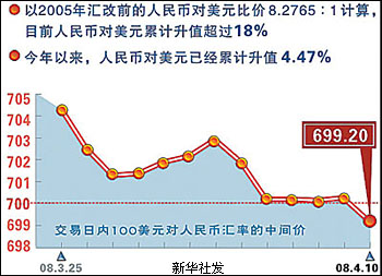 人民幣匯率較快升值乃至“破7”,有內(nèi)因也有外因。 從內(nèi)因看,隨著企業(yè)的適應(yīng)和承受能力增強(qiáng),人民幣匯率形成機(jī)制改革進(jìn)一步推進(jìn),匯率彈性增加,市場(chǎng)供求在匯率形成中的作用進(jìn)一步發(fā)揮。 近年來(lái),隨著貿(mào)易順差和外商投資的快速增長(zhǎng),外匯源源涌入,外匯市場(chǎng)持續(xù)供大于求。而人民幣升值預(yù)期的“抬頭”加劇了這種供求不平衡。由于去年人民幣升幅較大,加之美聯(lián)儲(chǔ)頻頻降息,中美利差進(jìn)一步倒掛,這些都可能刺激境外熱錢(qián)流入中國(guó);此外,國(guó)內(nèi)企業(yè)和居民的結(jié)匯意愿有所增強(qiáng),央行統(tǒng)計(jì)顯示,1月末、2月末的金融機(jī)構(gòu)外匯存款余額同比分別下降了9.2%和8.56%,這樣一來(lái),外匯市場(chǎng)供大于求的局面更為明顯,使人民幣升值“快馬加鞭”。 人民幣匯率形成市場(chǎng)化也是加強(qiáng)和改進(jìn)宏觀(guān)調(diào)控的需要。隨著匯率彈性增加,人民幣匯率逐步向均衡水平靠攏,有望適度抑制出口、擴(kuò)大進(jìn)口,進(jìn)而遏制貿(mào)易順差過(guò)快增長(zhǎng)的勢(shì)頭。這有助于從源頭上遏制外匯大量流入,減少央行基礎(chǔ)貨幣的被動(dòng)投放,從而緩解銀行體系流動(dòng)性過(guò)剩,防止投資反彈和經(jīng)濟(jì)過(guò)熱。 “另一方面,在國(guó)際市場(chǎng)能源、大宗商品價(jià)格上漲的情況下,人民幣升值能降低進(jìn)口原材料的人民幣價(jià)格,緩解輸入型的通貨膨脹。”中國(guó)銀行全球金融市場(chǎng)部全球調(diào)研主管袁躍東說(shuō)!安贿^(guò),也不應(yīng)將防通脹的重任完全交給匯率,實(shí)際上,人民幣升值對(duì)物價(jià)的抑制作用需要較長(zhǎng)時(shí)間才能體現(xiàn)出來(lái),但它帶來(lái)的反作用卻有可能立竿見(jiàn)影”,袁躍東分析說(shuō),人民幣加速升值會(huì)強(qiáng)化升值預(yù)期,吸引熱錢(qián)流入,由此會(huì)帶來(lái)更多的基礎(chǔ)貨幣投放及流動(dòng)性過(guò)剩,反而會(huì)加大國(guó)內(nèi)物價(jià)上漲壓力。