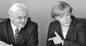 | 歐洲各主要經(jīng)濟(jì)體昨日紛紛出臺(tái)大力度救助措施。圖為德國(guó)總理默克爾和外長(zhǎng)施泰因邁爾(左)發(fā)表講話,德國(guó)政府最新公布了總金額高達(dá)4700億歐元的金融救援計(jì)劃。IC圖片 | 在歐元區(qū)15國(guó)領(lǐng)導(dǎo)人上周日通過(guò)金融救助行動(dòng)計(jì)劃后,歐洲各主要經(jīng)濟(jì)體昨日紛紛出臺(tái)相應(yīng)的大力度救助措施。與此同時(shí),美聯(lián)儲(chǔ)13日聯(lián)合歐洲和日本等五大央行再次加大“輸血”力度,向市場(chǎng)推行“無(wú)限額”注資計(jì)劃。業(yè)內(nèi)人士認(rèn)為,金融救市措施將維護(hù)金融市場(chǎng)穩(wěn)定,但大宗商品市場(chǎng)短時(shí)間內(nèi)難以扭轉(zhuǎn)下滑趨勢(shì)。