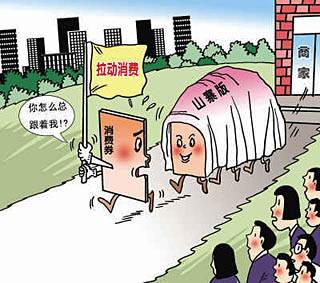 。吃鲁,連鎖巨頭蘇寧電器高調(diào)宣布在北京地區(qū)發(fā)放總額高達(dá)5000萬元的“百元消費券”,免費贈送消費者。消息一出,不少市民一大早起來排隊領(lǐng)券。但是這些消費券的使用附帶了限制條件:購買超過1000元的單件商品才能使用一張。無獨有偶,3月12日,上海永安百貨也開始發(fā)放總價值達(dá)千萬元的消費券,每份消費券包含50元面額6張、100元面額3張和200元面額2張。不過,每種面額的券都必須在購物滿一定額度后方可使用,其中200元的消費券只能用于抵扣珠寶、手表等大宗商品。 僅如此,趁著消費券正當(dāng)紅,如今在飯店、KTV、美容院、酒吧等娛樂餐飲場所,只要消費達(dá)到一定額度,都能獲得幾張面額不等的消費券。這股風(fēng)潮也刮進(jìn)了房地產(chǎn)領(lǐng)域。上海、北京、南京、武漢、蘇州等大中型城市的一些房地產(chǎn)網(wǎng)站和開發(fā)商相繼聯(lián)手推出了總額過億元的“購房消費券”,一經(jīng)推出就在短時間內(nèi)被申領(lǐng)一空。