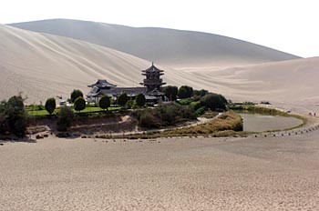 敦煌市著名景點(diǎn)月牙泉。本報(bào)資料照片 | 行政干預(yù)、工程應(yīng)急難解水事矛盾