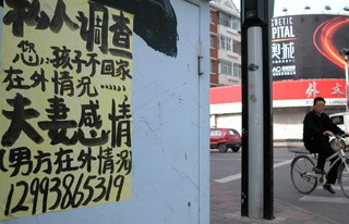 《民事訴訟法》規(guī)定誰主張誰舉證,用老百姓的話講就是需要自己拿證據(jù),這使民間調(diào)查機構(gòu)在龐大的市場需求下一步步孕育、催生出來。然而如今的許多私家偵探機構(gòu)為了獲得暴利,不得不在法律的邊緣行走。而關(guān)于私家偵探的存在是弊大于利、還是利大于弊的爭論始終沒有間斷。 11月中旬,記者在沈陽市私家偵探機構(gòu)比較集中的和平區(qū)調(diào)查時,碰巧遇到一位從事“調(diào)查員”工作時間較長的徐某。談及“業(yè)務(wù)”,他把私家偵探的業(yè)務(wù)歸納為民事和商業(yè)兩類。民事包括婚外戀調(diào)查、親子鑒定和尋人等。但現(xiàn)在最熱門的是幫顧客調(diào)查上司的愛好和隱私,掌握了上司的這些把柄,很多人就可以“心里有底”。 徐某還向記者透露,這個行業(yè)雖競爭殘酷,卻可獲暴利。比如婚外情調(diào)查,雖然起步價就要1萬元,但許多人還是趨之若鶩,最高一次有人出價10萬元。 “至于商業(yè)調(diào)查這一塊,以討債的居多,也有不少人花大錢要買工程或項目招投標的底價和對手價格之類。但法律有規(guī)定,這種行為最高可判12年,大的調(diào)查所一般不敢接,一些小所還是有接的!毙炷尺@樣講述著行業(yè)的內(nèi)幕。在暗訪中,記者了解到了沈陽調(diào)查行業(yè)的基本價格。尋人調(diào)查:4000元/人;婚外情調(diào)查10000元/人;查銀行存款:3000元/賬號;查手機記錄:2000元/部;查電話地址:1000元/部;查房產(chǎn):3000元/套…… 記者還注意到,幾乎所有的調(diào)查事務(wù)所都有攝像機、偷拍機、竊聽器等器材。偷拍機的針孔攝像頭是最先進的。調(diào)查人員在保持聯(lián)絡(luò)時,經(jīng)常使用手機和固定頻率的對講機。一般的調(diào)查事務(wù)所都擁有兩輛以上的車輛。 12月2日,在沈陽市皇姑區(qū)五一商店附近的一處民宅墻邊,記者發(fā)現(xiàn)了多個偵探機構(gòu)所發(fā)布的業(yè)務(wù)廣告。走到跟前細看,廣告內(nèi)容全是調(diào)查婚外情、跟蹤之類的業(yè)務(wù)。其實,我國公民的個人隱私受法律保護,跟蹤業(yè)務(wù)應(yīng)屬偵察工作,作為私家偵探機構(gòu)并無此權(quán)力。承諾能為客戶做此業(yè)務(wù),其實就是在表白自己可以無事不做,只要你出錢。這顯然已超出法律底線。