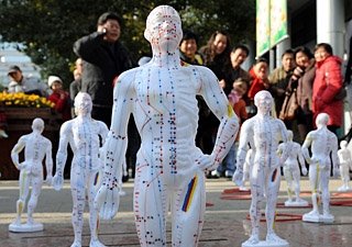 攝 | “中醫(yī)中藥中國行”江蘇站活動7日在南京啟動。在最近《求人不如求己》連出三冊、北京中醫(yī)藥大學(xué)老師曲黎敏的《黃帝內(nèi)經(jīng)養(yǎng)生智慧》講座風(fēng)靡電視等中醫(yī)養(yǎng)生熱的帶動下,以“傳承中醫(yī)國粹,傳播優(yōu)秀文化,共享健康和諧”為主題的“中醫(yī)中藥中國行”啟動儀式現(xiàn)場吸引了數(shù)千南京市民,他們紛紛學(xué)做中醫(yī)保健操,了解人體經(jīng)絡(luò)走向以及養(yǎng)生之道。 然而,記者對北京、江蘇、山西中醫(yī)藥行業(yè)調(diào)查后發(fā)現(xiàn),一邊是人們追捧中醫(yī)養(yǎng)生,一邊是中醫(yī)行業(yè)現(xiàn)況尷尬,正陷入從業(yè)人員減少、“中醫(yī)西化”的境地。
