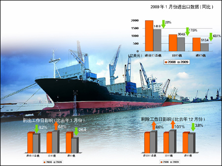 11日,海關(guān)總署公布了今年1月份的外貿(mào)數(shù)據(jù)。數(shù)據(jù)顯示,今年首月我國(guó)進(jìn)出口總值為1418億美元,比去年同期下降29%。這是中國(guó)外貿(mào)進(jìn)出口額連續(xù)第三個(gè)月出現(xiàn)下降。其中出口904.5億美元,下降17.5%;進(jìn)口513.4億美元,下降43.1%。 海關(guān)的分析指出,今年1月份比去年1月份少五個(gè)工作日,如果剔除工作日的影響,1月份的出口值比去年同期增長(zhǎng)6.8%,進(jìn)出口值和進(jìn)口值分別比去年同期下降8.2%和26.4%。同理,今年1月比去年12月少六個(gè)工作日,剔除工作日的影響,1月份進(jìn)出口值、出口值分別比去年12月份增長(zhǎng)4.6%和10.1%,進(jìn)口值下降3.8%。 對(duì)于這樣的數(shù)據(jù),發(fā)改委對(duì)外經(jīng)濟(jì)研究所所長(zhǎng)張燕生對(duì)媒體表示,這說(shuō)明出口已出現(xiàn)向好跡象!案ツ甑谒募径认啾龋隹趹(yīng)該是止跌的一個(gè)增長(zhǎng),1月份的數(shù)據(jù)給了我們信心。這說(shuō)明我們出臺(tái)的一系列保出口、保增長(zhǎng)的措施開始生效。”他說(shuō)。 盡管如此,更多專家對(duì)于1月份的數(shù)據(jù)仍然持不十分樂(lè)觀的態(tài)度。 興業(yè)銀行資金營(yíng)運(yùn)中心首席經(jīng)濟(jì)學(xué)家魯政委表示,盡管剔除春節(jié)因素后的出口數(shù)據(jù)有所好轉(zhuǎn),但是進(jìn)口數(shù)據(jù)仍然持續(xù)下滑!斑M(jìn)口大幅下滑,預(yù)示未來(lái)出口前景悲觀。考慮到加工貿(mào)易在外貿(mào)中占有較高比重,同時(shí)不少即使未被列入加工貿(mào)易的出口品上游原材料和燃料也多需要進(jìn)口,進(jìn)口的超預(yù)期下滑,預(yù)示著未來(lái)出口將繼續(xù)疲軟! 社科院世界經(jīng)濟(jì)與政治研究所國(guó)際貿(mào)易研究室主任宋泓也表示,從1月份總體數(shù)據(jù)來(lái)看,整體經(jīng)濟(jì)受到外部影響的態(tài)勢(shì)沒有發(fā)生改變,這主要反映在我國(guó)對(duì)主要貿(mào)易伙伴的貿(mào)易總額仍在大幅下降。 數(shù)據(jù)顯示,在我與主要貿(mào)易伙伴的雙邊貿(mào)易中,1月,中歐雙邊貿(mào)易總額為279.3億美元,下降18.7%;中美雙邊貿(mào)易總值為222.5億美元,下降15.2%;中日雙邊貿(mào)易總值為145億美元,下降28%。“我國(guó)進(jìn)出口60%以上的份額集中在與這三個(gè)伙伴的貿(mào)易中,目前他們自身經(jīng)濟(jì)都深陷泥潭,我國(guó)出口勢(shì)必受到很大影響! “去年8月份以來(lái),我國(guó)先后四次上調(diào)了部分商品的出口退稅率,但是政策的效果仍然有限,外需不振是對(duì)出口造成沖擊的主要原因,想扭轉(zhuǎn)目前的貿(mào)易格局僅靠出口退稅不行。”中投證券宏觀經(jīng)濟(jì)分析師邢微微表示。 從出口商品分類的具體數(shù)據(jù)來(lái)看,盡管服裝出口、鞋類產(chǎn)品出口和箱包出口均有不同程度的增長(zhǎng),但是占我國(guó)出口總值54.3%的機(jī)電產(chǎn)品出口為491.4億美元,下降了20.9%。另外,電器及電子產(chǎn)品出口181.2億美元,下降28.3%;機(jī)械及設(shè)備出口169.4億美元,下降16%;高新技術(shù)產(chǎn)品出口216.6億美元,下降28%。 “與服裝紡織類產(chǎn)品相比,機(jī)電、電子類產(chǎn)品是技術(shù)密集型,并且是高收入彈性,也就是說(shuō),這類產(chǎn)品主要是出口到更高收入的發(fā)達(dá)國(guó)家。而目前,美歐這類發(fā)達(dá)國(guó)家受到金融危機(jī)的影響最大。因此,這類產(chǎn)品的出口一定會(huì)受到更大程度影響。”宋泓說(shuō)。 “目前,對(duì)于全年外貿(mào)形勢(shì)的判斷還不好說(shuō),因?yàn)檫@主要還是要看外部環(huán)境恢復(fù)得如何!彼毋f(shuō)。而魯政委預(yù)測(cè),2009年中國(guó)出口會(huì)下跌5.5%,進(jìn)口還會(huì)下跌11.5%。