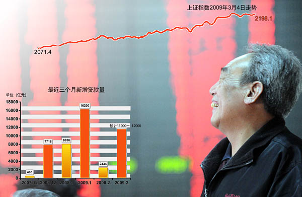 2月份的最后一周,國內銀行開始貸款沖刺,政府主導的項目貸款成了追捧的熱點。記者了解的數據顯示,2月份,工行新增人民幣貸款不到2000億元,中行新增人民幣貸款1900億元,建行新增人民幣貸款1600億元,四家國有銀行新增人民幣貸款超過6000億元,國內金融機構全部新增人民幣貸款在1.1至1.2萬億元。