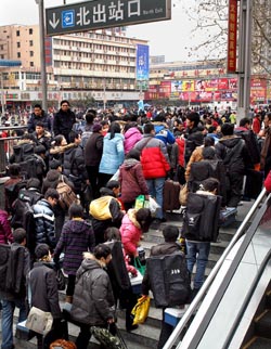 1月21日,旅客們從鄭州火車站的地下出站口出站。新華社記者 王頌