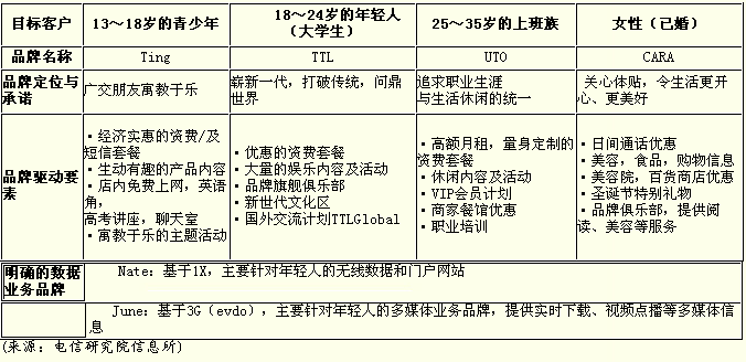 1x業(yè)務(wù)。KTF和SKT分別在2000年和2002年推出了EV-DO網(wǎng)絡(luò)服務(wù),目前其覆蓋范圍最大達(dá)81個(gè)城市,可支持的數(shù)據(jù)傳輸速率達(dá)到2.4Mbps,可提供GPS、移動(dòng)多媒體、虛擬通信、移動(dòng)會(huì)議等多種服務(wù)。LGT目前還未開通EV-DO服務(wù)。 ★市場(chǎng)增長(zhǎng)情況 目前,韓國(guó)移動(dòng)電話用戶數(shù)達(dá)3700萬,移動(dòng)電話普及率為77%,移動(dòng)市場(chǎng)形成了由SKT、KTF和LGT三足鼎立的局面,其中SKT、KTF和LGT的用戶數(shù)分別為1900萬、1200萬和600萬。據(jù)ARC集團(tuán)分析,2004年由于EV-DO業(yè)務(wù)在韓國(guó)推廣良好,韓國(guó)3G移動(dòng)電話的銷量比2003年增長(zhǎng)了117%。2005年EV-DO在3G市場(chǎng)的占有率達(dá)到34%,到2009年有望達(dá)到91%。 2004年1月以來,韓國(guó)三大移動(dòng)運(yùn)營(yíng)商先后開放了號(hào)碼可攜帶服務(wù),KTF與LGT等市場(chǎng)挑戰(zhàn)者利用這一政策不同程度地提升了自身的3G市場(chǎng)份額。目前,韓國(guó)SKT和KTF的EV-DO用戶市場(chǎng)份額分別為65%和35%。 韓國(guó)政府出于減輕高通專利費(fèi)壓力及擴(kuò)大國(guó)際市場(chǎng)空間等戰(zhàn)略考慮,于2000年向SKT和KTF發(fā)放了WCDMA牌照。2003年12月,SKT與KTF分別開通了覆蓋首爾地區(qū)的WCDMA網(wǎng)絡(luò),韓國(guó)從而成為全球唯一的運(yùn)營(yíng)商同時(shí)運(yùn)營(yíng)兩種3G制式的國(guó)家。雖然韓國(guó)WCDMA服務(wù)商用化至今已有兩年多,但受多種因素的影響,用戶增長(zhǎng)緩慢。到2005年11月底,僅發(fā)展用戶1.2萬戶。 ★業(yè)務(wù)發(fā)展情況 在業(yè)務(wù)發(fā)展方面,SK電訊的經(jīng)驗(yàn)值得一提。SKT把用戶按年齡段進(jìn)行了細(xì)化,在全面研究每個(gè)年齡段用戶需求特點(diǎn)的基礎(chǔ)上,提供具有針對(duì)性的品牌服務(wù),以鞏固并擴(kuò)大用戶規(guī)模。目前,SKT主推Ting、TTL、UTO和CARA這4種客戶品牌,見表2。 作為韓國(guó)第二大移動(dòng)運(yùn)營(yíng)商,KTF基于1X和EV-DO網(wǎng)絡(luò),將其數(shù)據(jù)與增值業(yè)務(wù)劃分為Magic@、Fimm兩大綜合門戶品牌及Multipack、K-merce、VIZ、Telematics等多個(gè)子品牌。Magic@是KTF于2001年1月推出的最基本的數(shù)據(jù)與增值業(yè)務(wù)門戶品牌,所涵蓋的主要是以短信(定制、推送類)、MMS、鈴聲下載等為主的2.5G業(yè)務(wù)。無論是2G的CD-MAIS95用戶,還是cdma