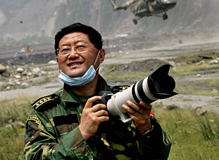 不到10公里的山路,我竟跌跌撞撞走了3個多小時。在當?shù)貎晌恢驹刚邘椭拢医K于到達了映秀鎮(zhèn)。如果沒有他們幫我背器材,我還不知道要走多久。 疲憊不堪的我一踏上映秀鎮(zhèn),看到的只是群山中的一片廢墟,漩口中學倒塌的樓房最為明顯。在廢墟前面的空地上,躺著數(shù)不清的等待救援的傷員,還有救援部隊官兵奔波的身影,緊張的氣氛就像一部戰(zhàn)爭影片的場景。 不拋棄,不放棄!這是中國一場前所未有的生死大營救,前來救援的直升機轟鳴聲在山谷里回蕩,每當直升機一落地,官兵們就冒著彌漫的塵土,抬起擔架向直升機沖去,快速搶運受傷群眾。在空地上等待救援的大批傷員,仰望天空,翹首企盼。 為了更多地挽救地震中受傷災民的生命,成都軍區(qū)每天派往映秀的直升機多達幾十個架次,使大批的傷員得到及時治療。直升機還為徒步進入的先期部隊送來了食品和淡水。 在映秀鎮(zhèn)的廢墟旁,我見到了濟南軍區(qū)“鐵軍”127師師長楊劍,得知濟南軍區(qū)已有4萬多名將士開赴災區(qū),他親自率領著800名“鐵軍先遣隊”連夜徒步從都江堰出發(fā),急行軍來到受災嚴重的映秀鎮(zhèn),50多公里山路他們走了9個小時。 在映秀鎮(zhèn),遭受損失最嚴重的要屬兩所學校,一所是映秀中心小學,另一所是漩口中學,因為地震時學生們都在教室里上課,絕大多數(shù)學生沒來得及跑出來。 我穿過小山一樣的瓦礫,來到位于鎮(zhèn)子里面的映秀中心小學。這里靜得出奇,校舍全部倒塌,只有飄著五星紅旗的旗桿沒有倒,孤獨地立在廢墟中,空曠的操場上擺滿了遇難學生的遺體。一位老鄉(xiāng)告訴我,當時有300多名孩子在這里上課,全被壓在了下面。 武警成都支隊政委李丕金,是一個令我敬佩的人。他的家鄉(xiāng)北川受災嚴重,失去了4名親人,還有6人沒有音訊,可是他強忍悲痛依然帶領部隊官兵奮戰(zhàn)在抗震救災第一線,從12日到16日的4天三夜,他指揮部隊搶救出600多名受災群眾。他身先士卒,凡是艱難險重的任務他都沖鋒在前。為防止災區(qū)疫情發(fā)生,16日,部隊接到搬運和掩埋遇難者遺體的任務,李政委擔心年十八九歲的年輕戰(zhàn)士有心理障礙,他就主動去抬第一具尸體,并進行耐心講解,打消了官兵們心中的顧慮?粗前炯t的雙眼,同樣作為軍人的我,心中默默地向他敬了個莊嚴的軍禮! 在震中映秀采訪的兩天兩夜,令我終生難忘:沒吃、沒喝、沒地方住,沒洗過臉,沒刷過牙,沒換過衣襪,也沒刮過胡子,甚至沒有大便,因為兩天都沒吃什么東西。臉上和頭發(fā)里全是土,臉被太陽曬得黝黑,就像回到了原始社會。隨身攜帶的一件雨衣,成了我過夜的惟一裝具。每天晚上半夜發(fā)完稿,雨衣就地一鋪,席地而睡,山里夜間氣溫變化大,總會在后半夜凍醒。 在這里,強烈的余震每天都有很多次,開始還有些在意,后來就習慣了。記得第一天凌晨2點30左右,一次6.1級的強余震發(fā)生,將躺在地上的我震醒,不遠處的山體滑落的巨石砸落在岷江里,發(fā)出“轟隆隆”的轟鳴聲,在寂靜的夜里,顯得如此驚心。