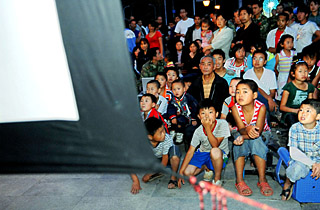 | 6月7日,青川縣受災群眾在看電影。新華社記者 謝環(huán)馳