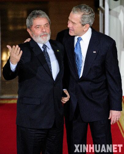 11月14日,美國總統(tǒng)布什(右)在白宮迎接前來出席二十國集團領(lǐng)導(dǎo)人金融市場和世界經(jīng)濟峰會的巴西總統(tǒng)盧拉。二十國集團領(lǐng)導(dǎo)人金融市場和世界經(jīng)濟峰會將于11月15日在華盛頓舉行。除二十國集團成員領(lǐng)導(dǎo)人外,聯(lián)合國、世界銀行、國際貨幣基金組織、金融穩(wěn)定論壇等國際機構(gòu)負責人也將出席峰會。